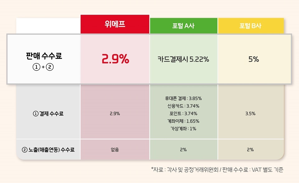 - 기본 판매 수수료(검색 및 채널 등을 통한 파매로, 방송 외 판매) 9%