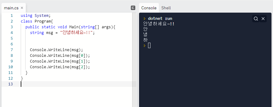 Split() 문자열을 특정한 문자 또는 문자열로 자른다.