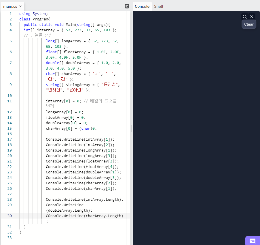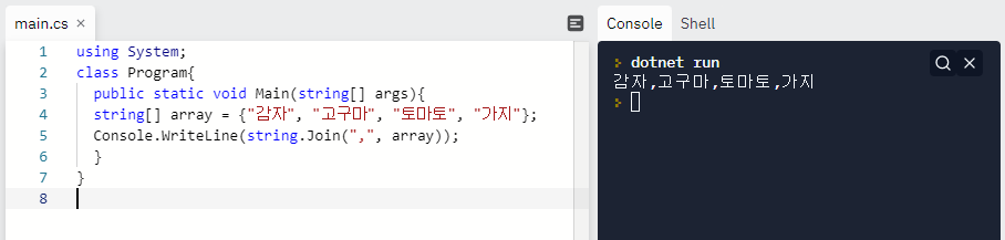 string.Join() 배열의 요소를 뭉쳐 문자열로 변경한다.